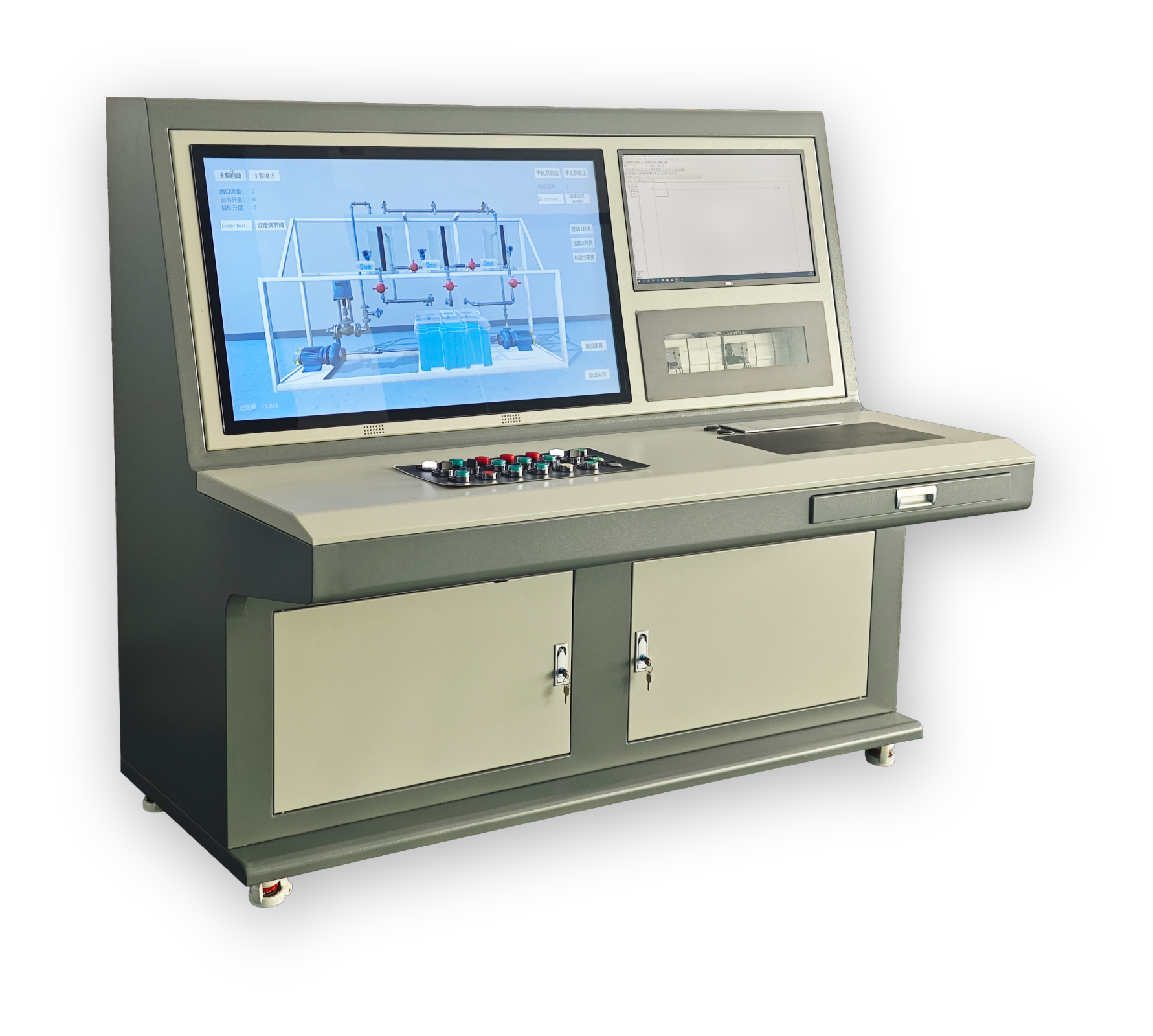 装置技术:深度融合三维建模、流体力学、运动仿真、PLC 通信、电气工程等核心技术,为自动化控制专业学生提供控制程序编写、PID 参数整定等实验条件。