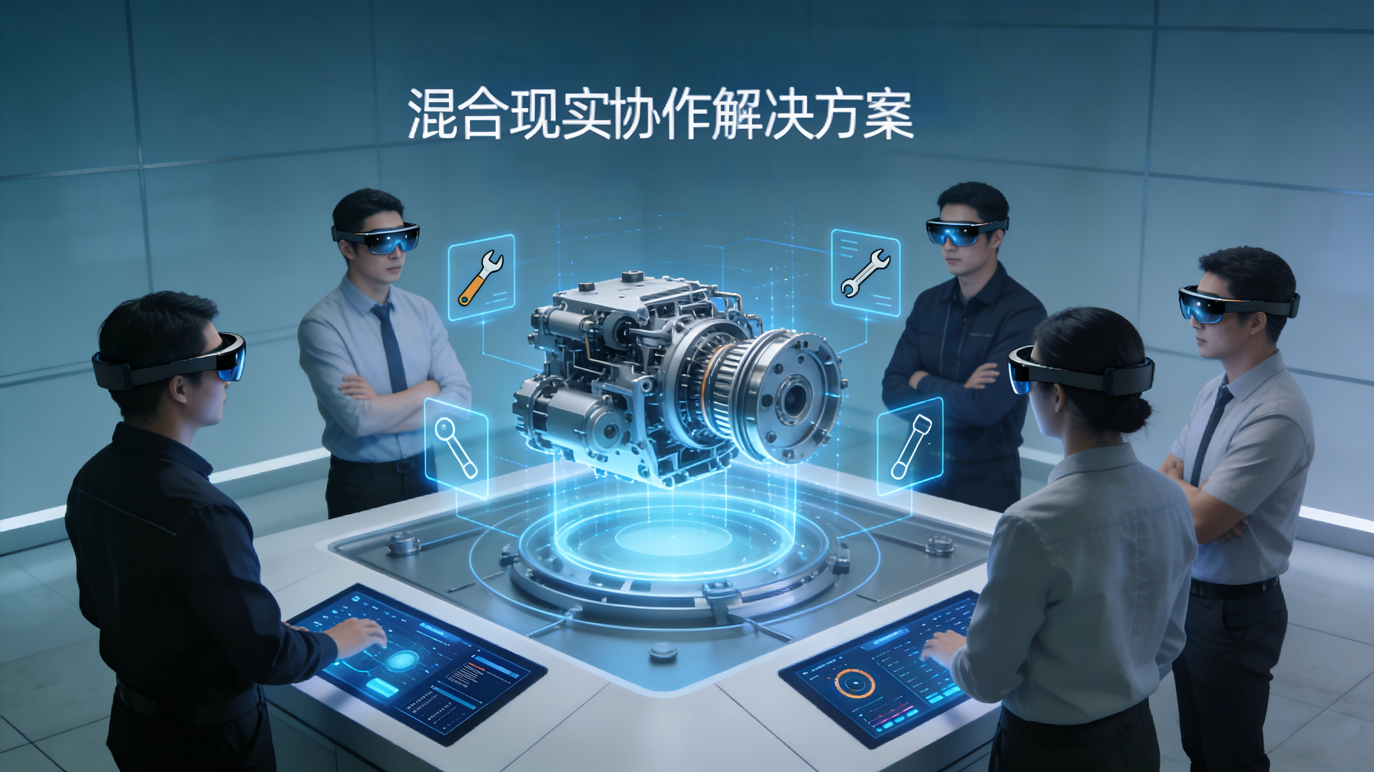 构建 3D 场景与数字孪生,经 MR 设备虚实融合,通过网络同步实现多人实时交互,叠加物理引擎与 AI 实现高仿真训练,解决传统训练成本高、风险大、协同难、评估难等问题。